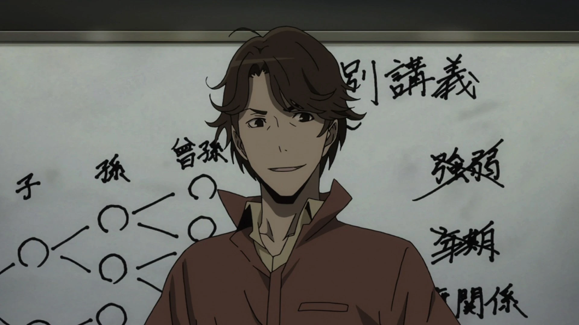 Takashi Nasujima (那須島 隆志, Nasujima Takashi) starts the series as a teacher at Raira Academy. He is attracted to Anri Sonohara and will talk to her when they are alone, but as soon as Masaomi Kida shows up, Takashi leaves.